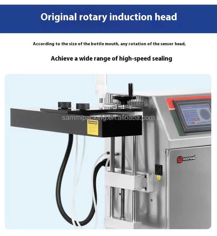 Esta máquina de vedação por indução não é adequada para recipientes metálicos, tampa sem parafuso.é entre 20 mm-180 mm para opçãoÉ adequado para a grande fábrica de produção.
