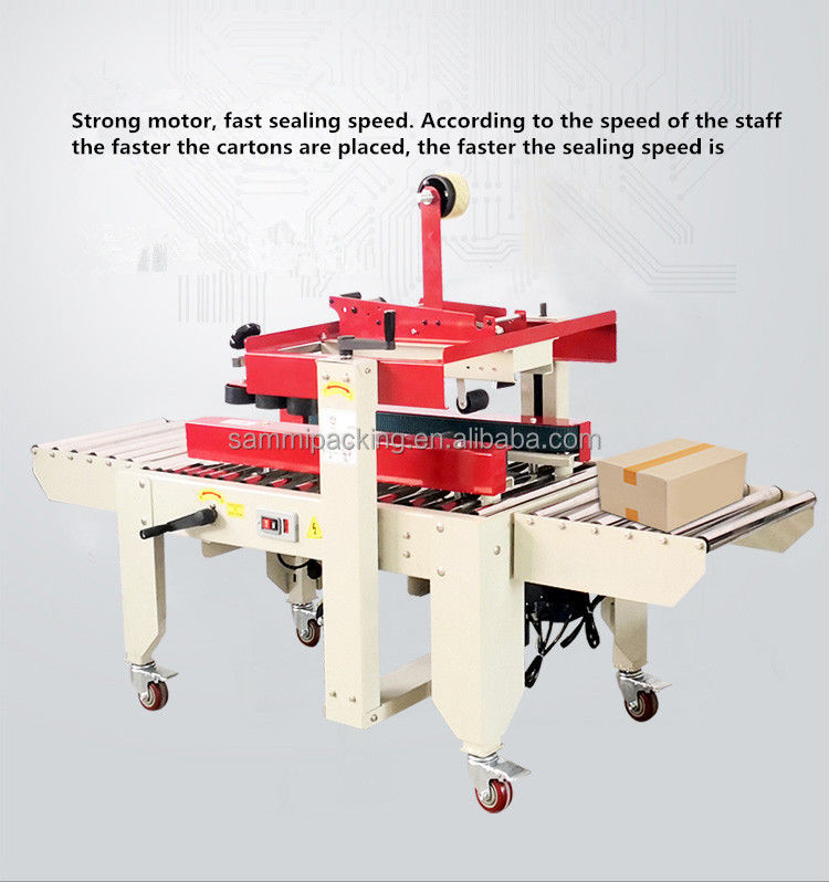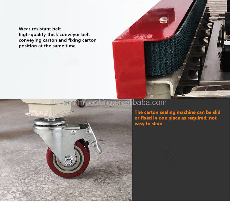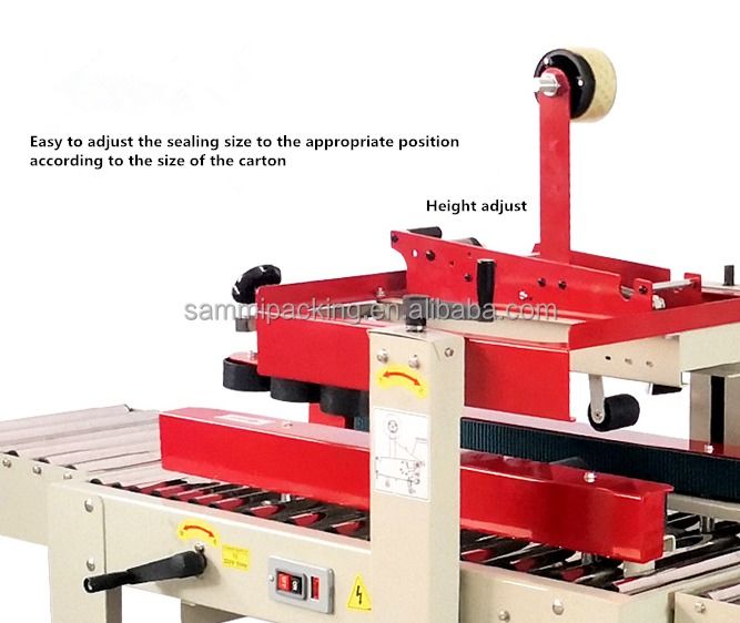 2. Ajuste a altura e a largura da vedação manualmente de acordo com o tamanho da caixa, coloque a caixa na mesa de trabalho e a caixa será transmitida e selada com fita adesiva automaticamente ao mesmo tempo.