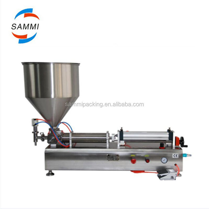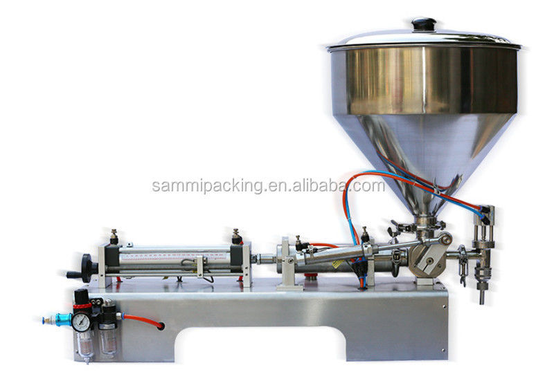 Enchedora de pistão da série GFA de enchimento semi-automático. Acionada por um cilindro e pistão feitos de materiais com válvulas de CINCO vias que controlam o fluxo de materiais, e o interruptor de palheta magnética controla o itinerário do cilindro, o volume de enchimento pode ser regulado.