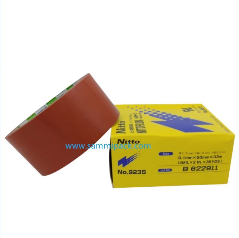 A Fita Nitto No.923S é uma fita que utiliza um filme de politetrafluoroetileno (PTFE) especialmente orientado de cor laranja como material de base. Superfície única tratada e revestida com um adesivo de silicone que possui alta resistência ao calor. A fita oferece excelentes características, como propriedades elétricas, resistência ao calor, resistência química e não aderência.