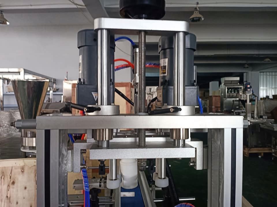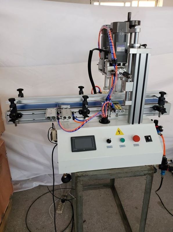 Adequada para o enroscamento de tampas de diferentes formatos de garrafas nas indústrias de alimentos, produtos farmacêuticos, produtos químicos diários, pesticidas e cosméticos, etc. Seus quatro motores de velocidade ajustável são usados, respectivamente, para fornecimento de tampas, fixação de garrafas, entrega e enroscamento de tampas. Caracteriza-se por alto nível de automação, excelente estabilidade, fácil ajuste, sem necessidade de peças de reposição para substituir tipos de garrafas ou tampas, o que pode ser feito apenas ajustando.