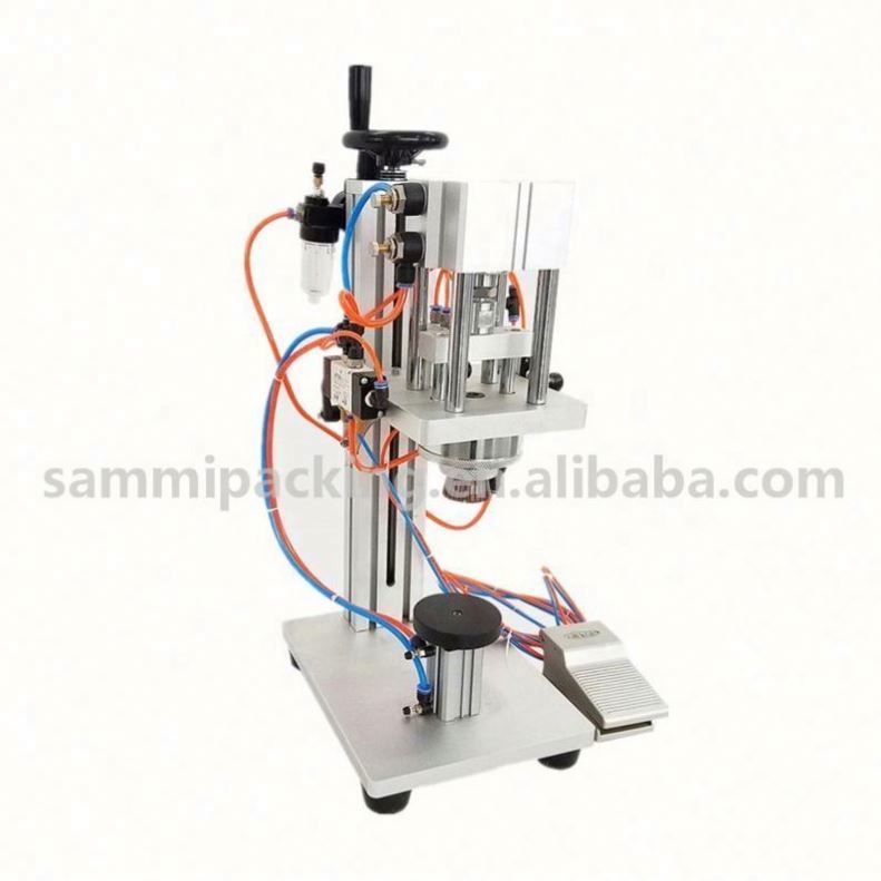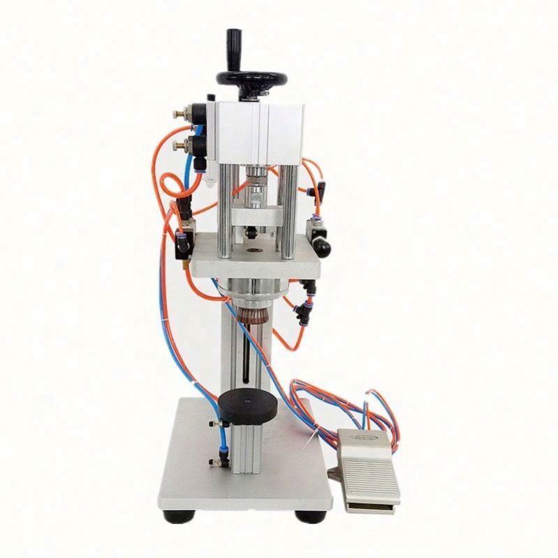 A máquina de crimpagem de perfume é um tipo de máquina de fechamento de tampa do tipo fixação. É adequada para o fechamento de tampas do tipo spray. A máquina usa a fixação para fechar a tampa e prendê-la na borda da boca do frasco. Toda a máquina é composta por corpo da máquina, superfície da mesa, dispositivo de fixação e sistema de controle pneumático.