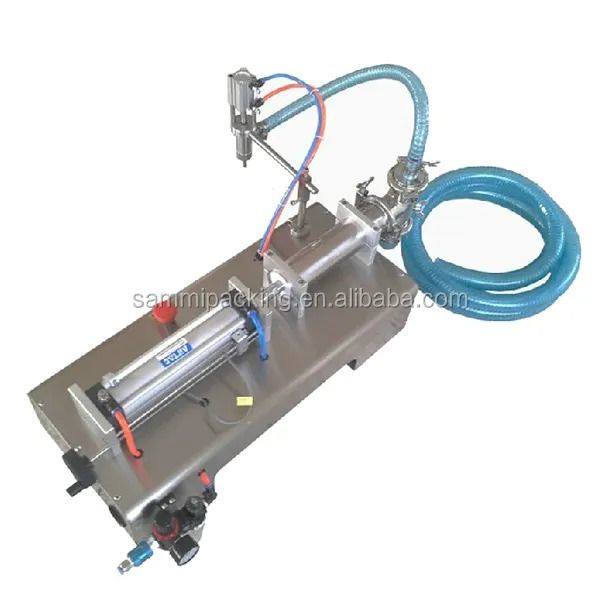 Enchedora de pistão da série GFA semi-automática. Acionada por um cilindro e pistão feitos de materiais com válvulas de CINCO vias que controlam o fluxo de materiais, e o interruptor de palheta magnética controla o itinerário do cilindro, o volume de enchimento pode ser regulado.